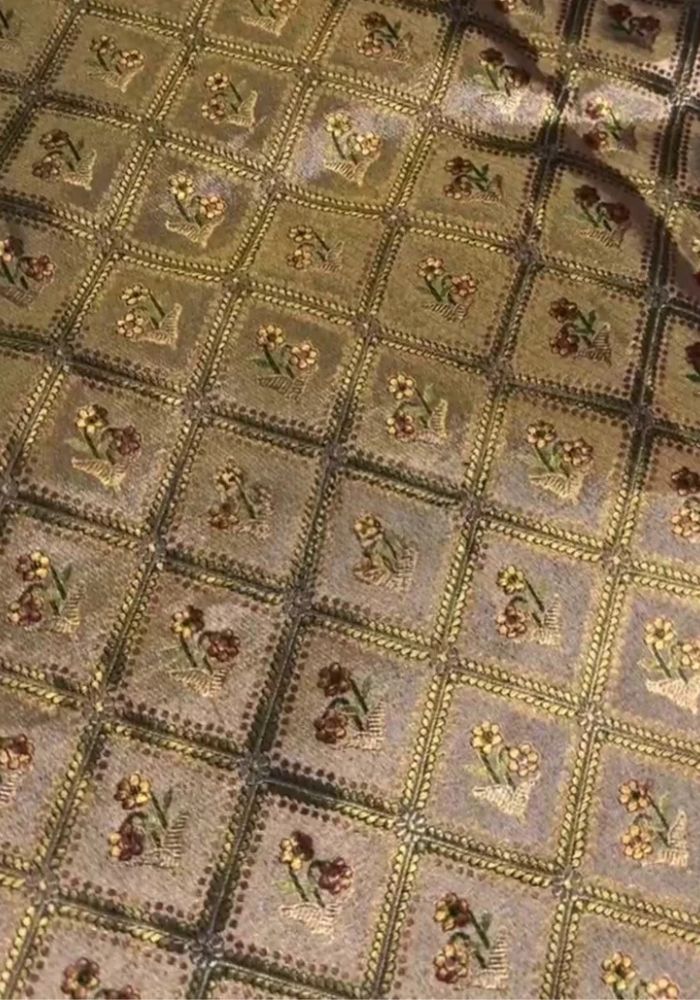 Type of Work: Zari Floral Motifs with Contrast Zari Border